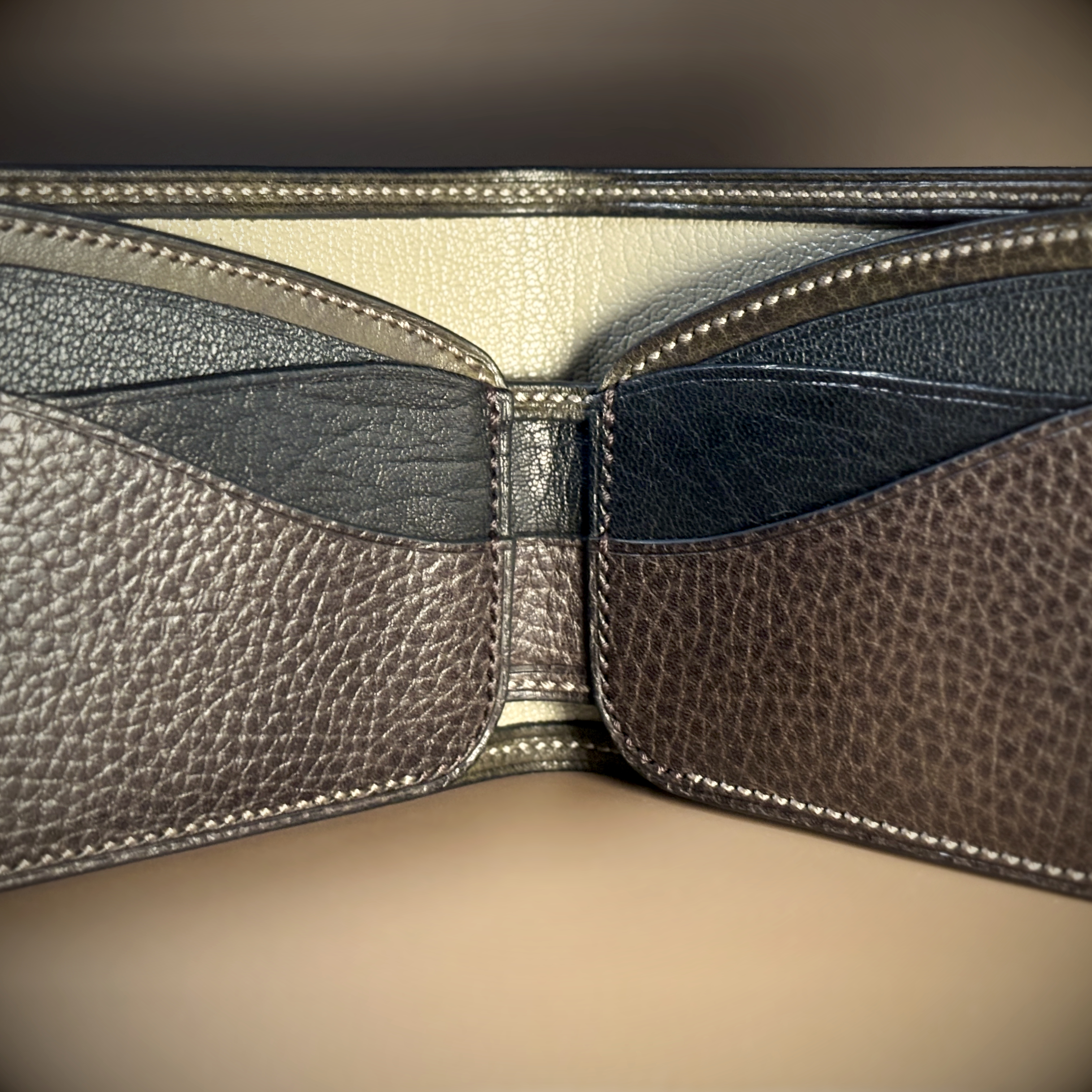- Classic bifold wallet; central gusset
